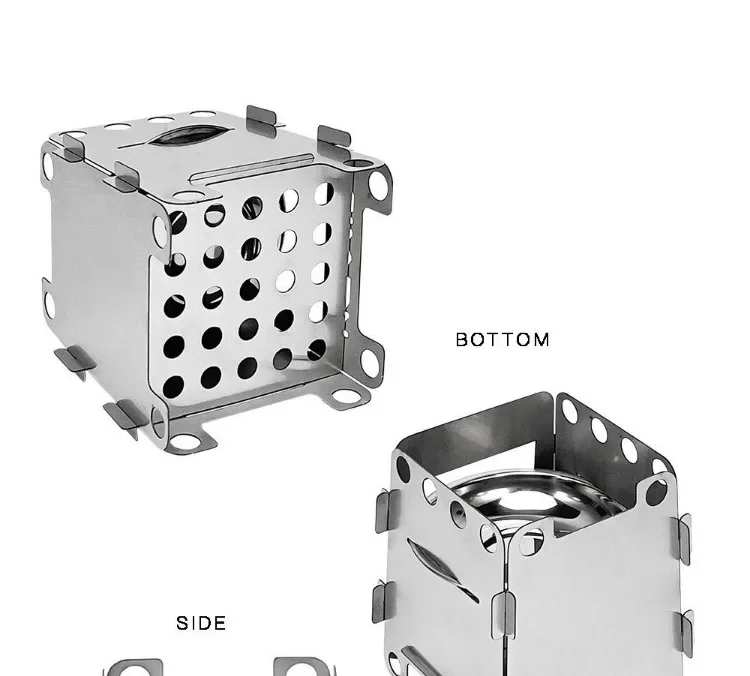 3. All-terrain compatibility: The four-corner bracket adapts to uneven ground to prevent tipping. Compatible with firewood, charcoal, and alcohol blocks to solve the problem of outdoor fuel shortage.